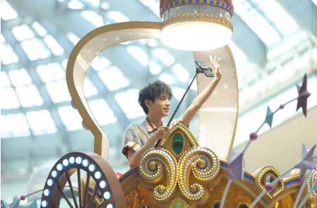 精彩的花车表演车队中,罗云熙乘坐华美的花车与大家见面,在花车上向游客挥手问候,并在花车上大玩自拍,数万名游客追随花车与他一路同行。